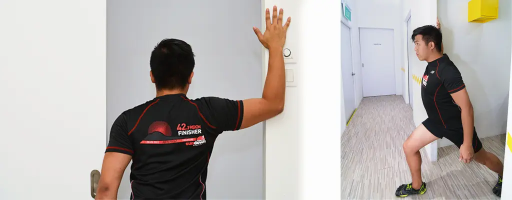 • Ensure that both feet are pointing forward during the stretch