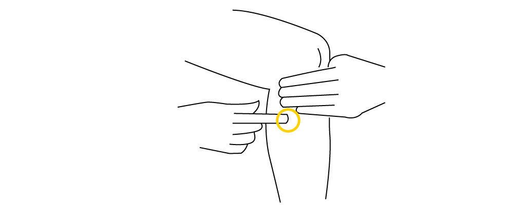 Location: 3 inches (or 4 finger widths) down from the dent of the anterolateral of the knee cap